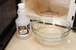 Keeping your microwave clean is essential to prevent unpleasant odors and maintain a healthy kitchen. To clean, mix water and vinegar in a bowl, microwave for 5 minutes and wipe clean. Use lemon juice for a fresh scent! #microwave #cleaningtips #kitchencleaning